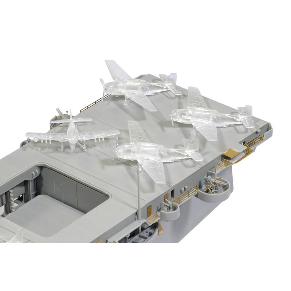 キットにはTBF、F-6F、SBDの各艦載機も透明部品でセット。甲板や格納庫に装備することで実感ある仕上がりが期待できます。