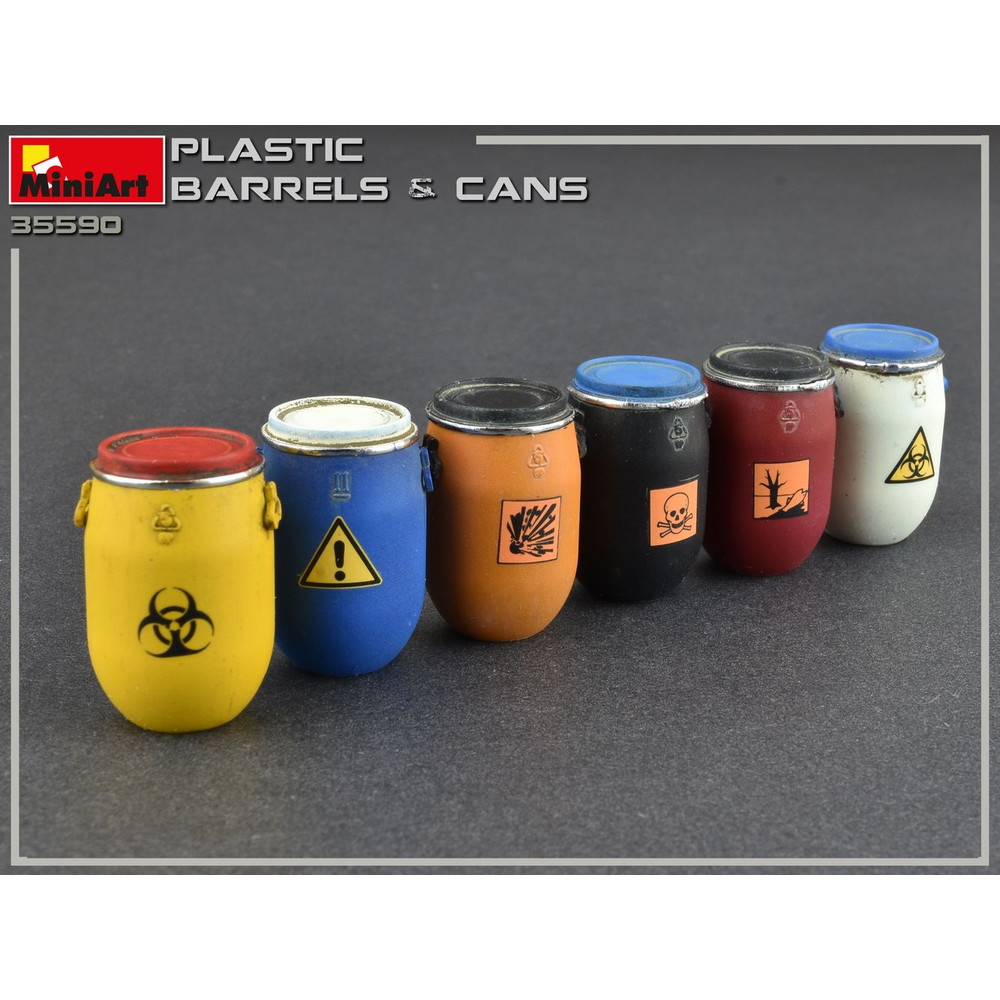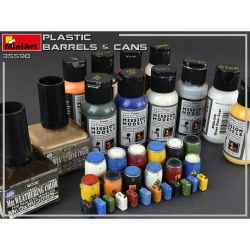 樹脂製のドラム缶タイプの大型タンクが2種類のサイズで各6個とジェリカンタイプの小型タンクが12個セットされています。それぞれ形状や口などのディテールもしっかりと再現。
