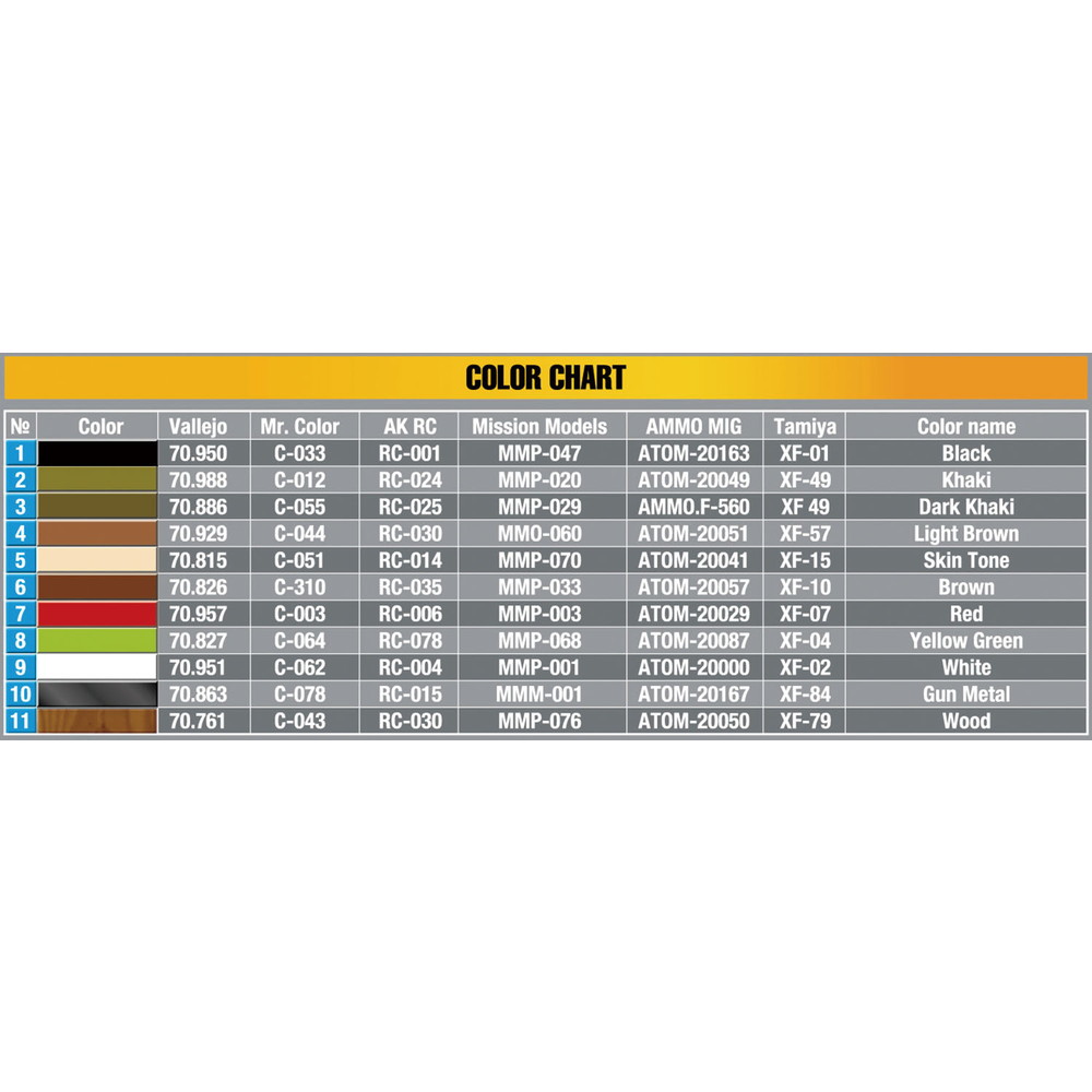 さらに小銃やピストル、双眼鏡などの小火器類やヘルメット、ポーチなどの個人装備もセット。フィギュアにリアリティを加えて情景製作の幅を広げるセットです。