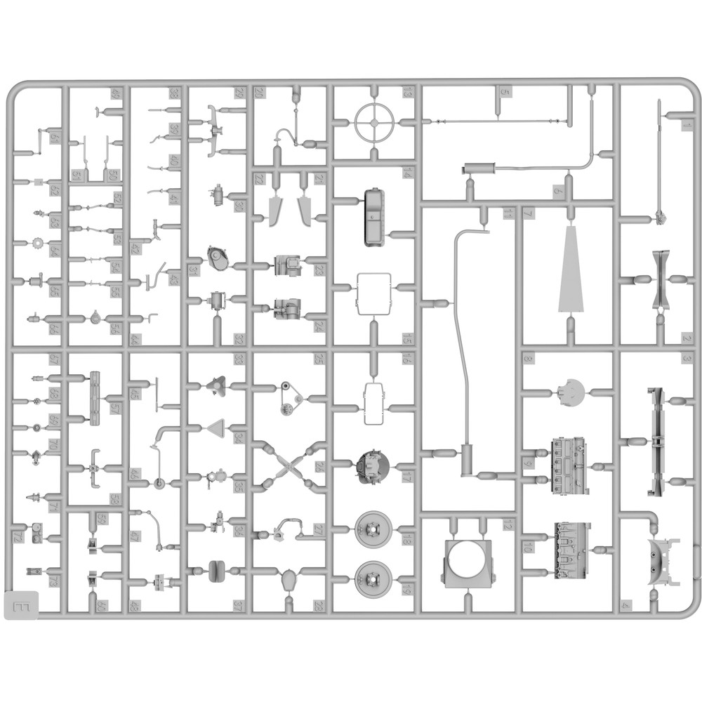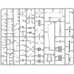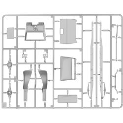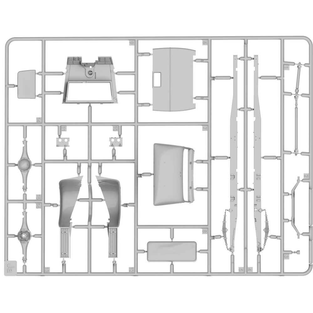 エンジンからフレームまで詳細に再現されたフルディテールキットです。ラダーフレームのシャーシにはリーフスプリングのサスペンションやドライブシャフト、スペアタイヤや燃料タンクなどをしっかりと再現。