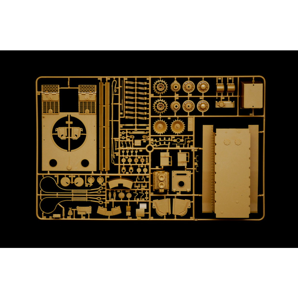 で砲塔側面パーツにはそこに装着された予備履帯も一体でモデル化。