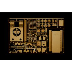 キューポラのハッチは開閉を選択して組み立て可能です。車体下部は一体パーツでサスペンションアームはは別パーツ。