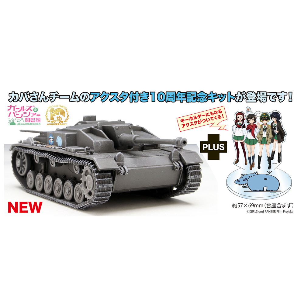 大洗女子学園カバさんチームが乗るIII号突撃砲F型がいよいよかわいいアクリルスタンド付属の10周年記念キットとして登場です!