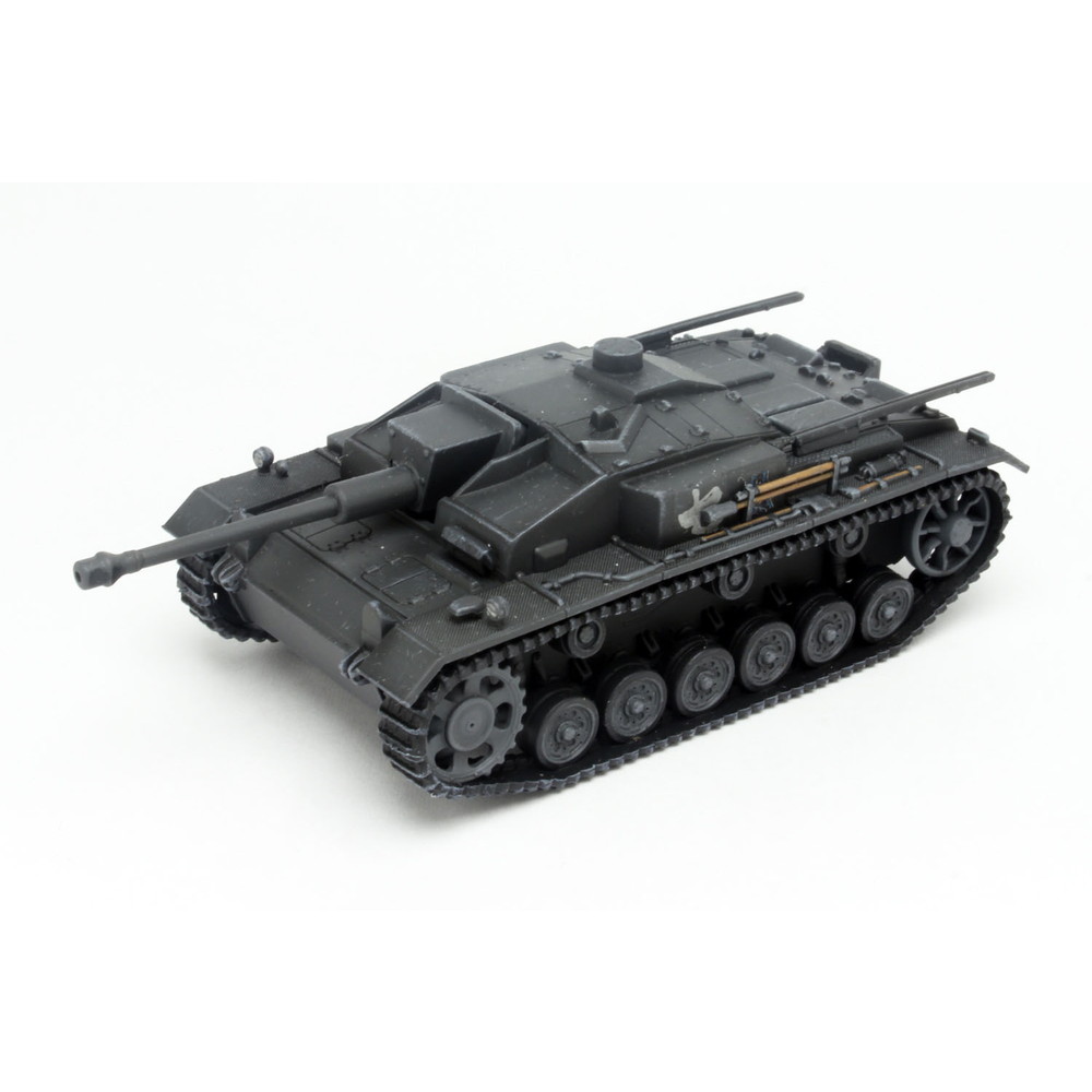 抜群の作りやすさを実現しました。本体成形色は塗装がしやすいジャーマングレイ、履帯をブラックで成形。塗装なしで組み立てるだけでもアニメに近い仕上がりになります。
