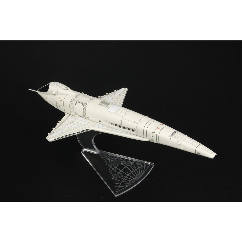 SF映画の金字塔「2001年宇宙の旅」に登場した地球と宇宙ステーションの間を結ぶ宇宙船、スペースクリッパーを再現したプラスチックモデル組み立てキットです。