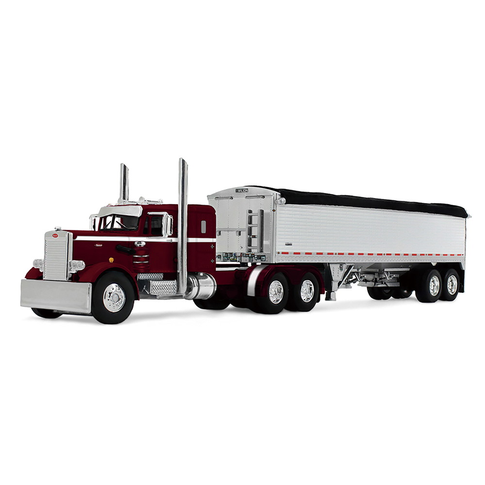 ●アメリカを代表するトラックメーカー、ピータービルトのモデル351とウイルソン社のペースセッター穀物トレーラーを組み合わせて1/64スケールで再現した塗装済ダイキャストモデル完成品