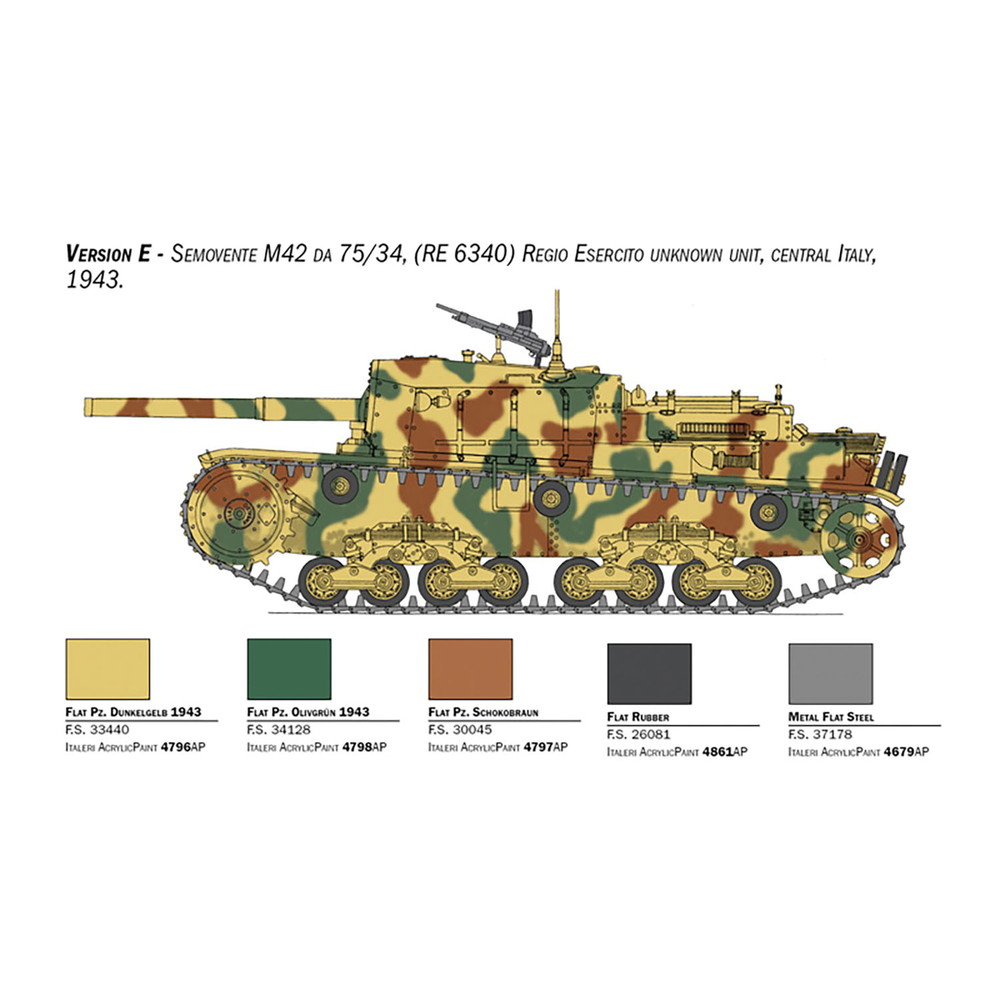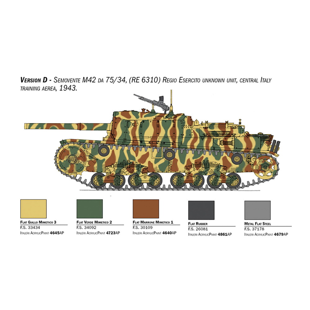 カルロ・アルマートのM13/40の車体を使用した車両はM40 da 75/18として制式化。歩兵支援車両としてはもちろん、対戦車戦闘にも高い威力を発揮したことから、その能力を高めるために34口径の75mm戦車砲をM42車体に装備したM42 da 75/34を開発。