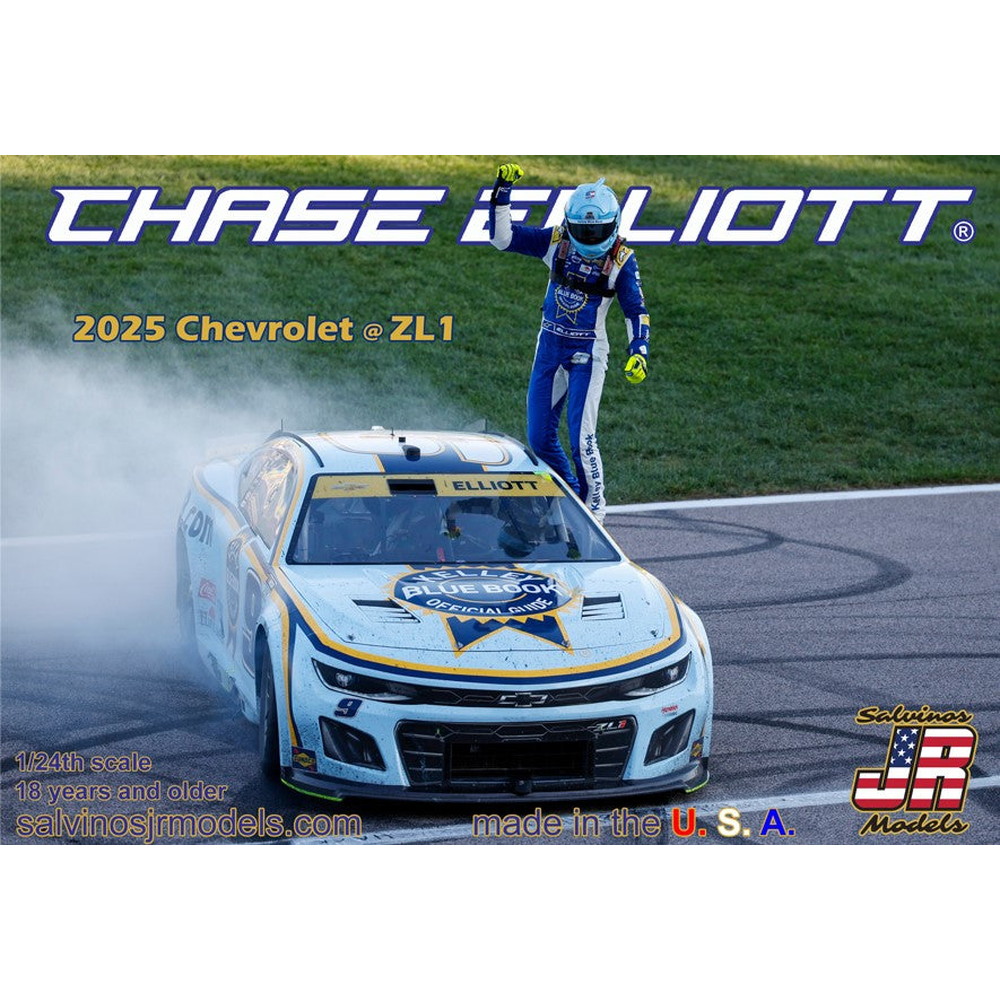 モデルは2025年9月にカンザス・モータースピードウェイで開催されたカップシリーズのプレーオフの1戦、ハリウッドカジノ400でヘンドリック・モータースポーツのチェイス・エリオットがドライブして見事優勝を飾ったシボレー・カマロを再現した1/24スケールのプラスチックモデル組み立てキットです。