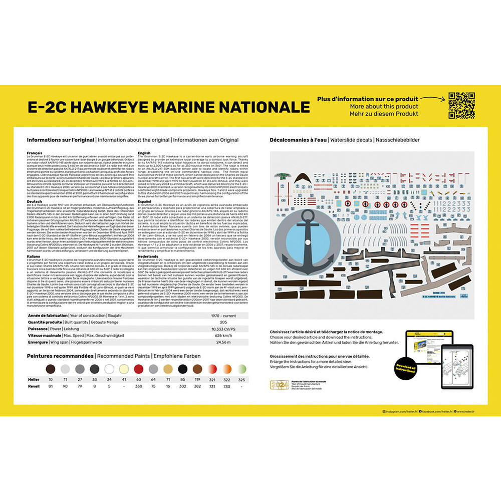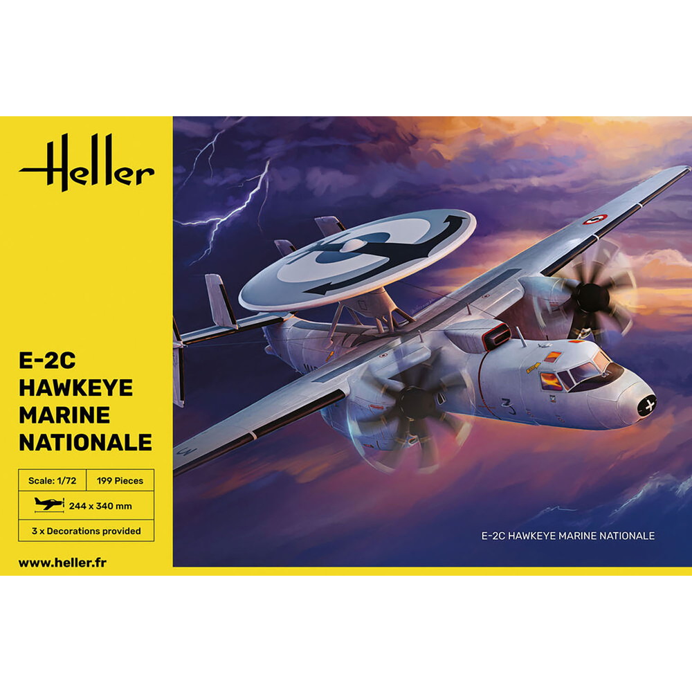 1/72スケールで1964年からアメリカ海軍が運用している早期警戒機、E-2ホークアイを再現したプラスチックモデル組み立てキットです。中でもフランス海軍が運用しているE-2Cをモデル化しています。