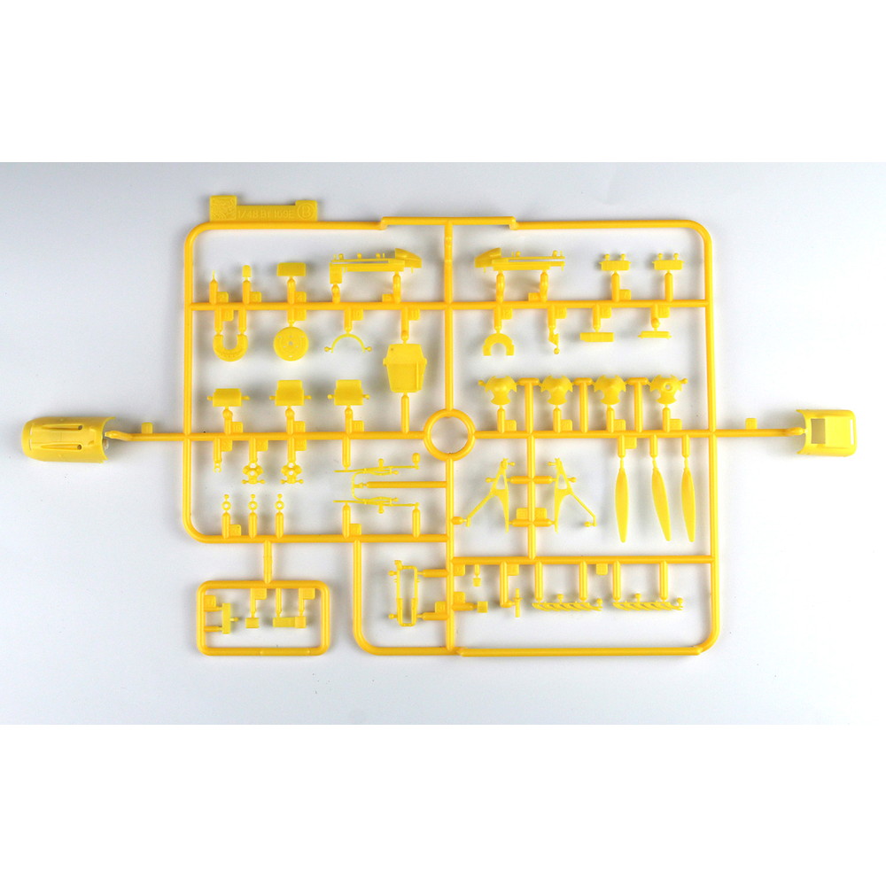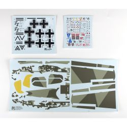 また、機首にはダイムラーベンツの12気筒エンジンを3Dプリントの1体パーツで用意。さらに、フレーム塗装済みのキャノピーやドイツ機独特の迷彩塗装を再現した大型のデカールもセット。