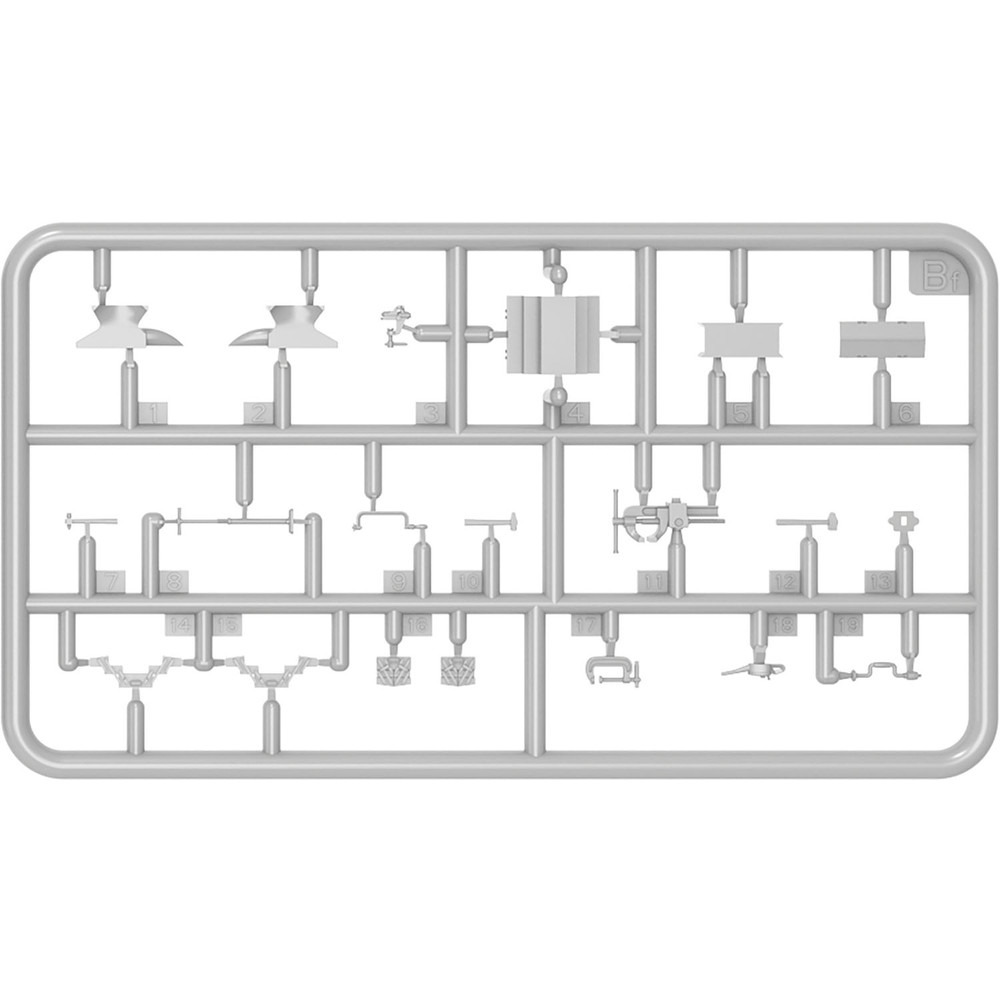 町工場、ガレージの情景製作に役立つ各種ツールや備品を再現したキットです。スケールは1/48。