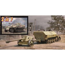 一般的な牽引状態と車体に搭載したSd.kfz.251/22のどちらか選んで組み立てられる2in1キットです。