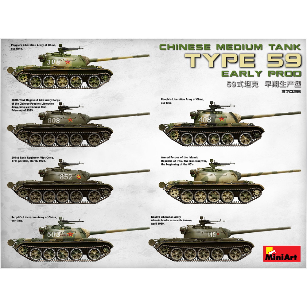 モデルはソビエトのT-54をベースに中華人民共和国が独自の改修を施して運用した59式戦車を1/35スケールで再現したプラスチックモデル組み立てキットです。
