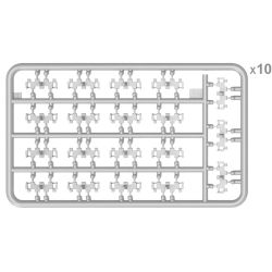 車体下部は箱組み式。底面のディテールも詳細に再現。サスペンションはトーションバーもモデル化され、完成後も可動。大径のロードホイールに履帯は連結組み立て式を採用して仕上がりの自然なたるみも表現。