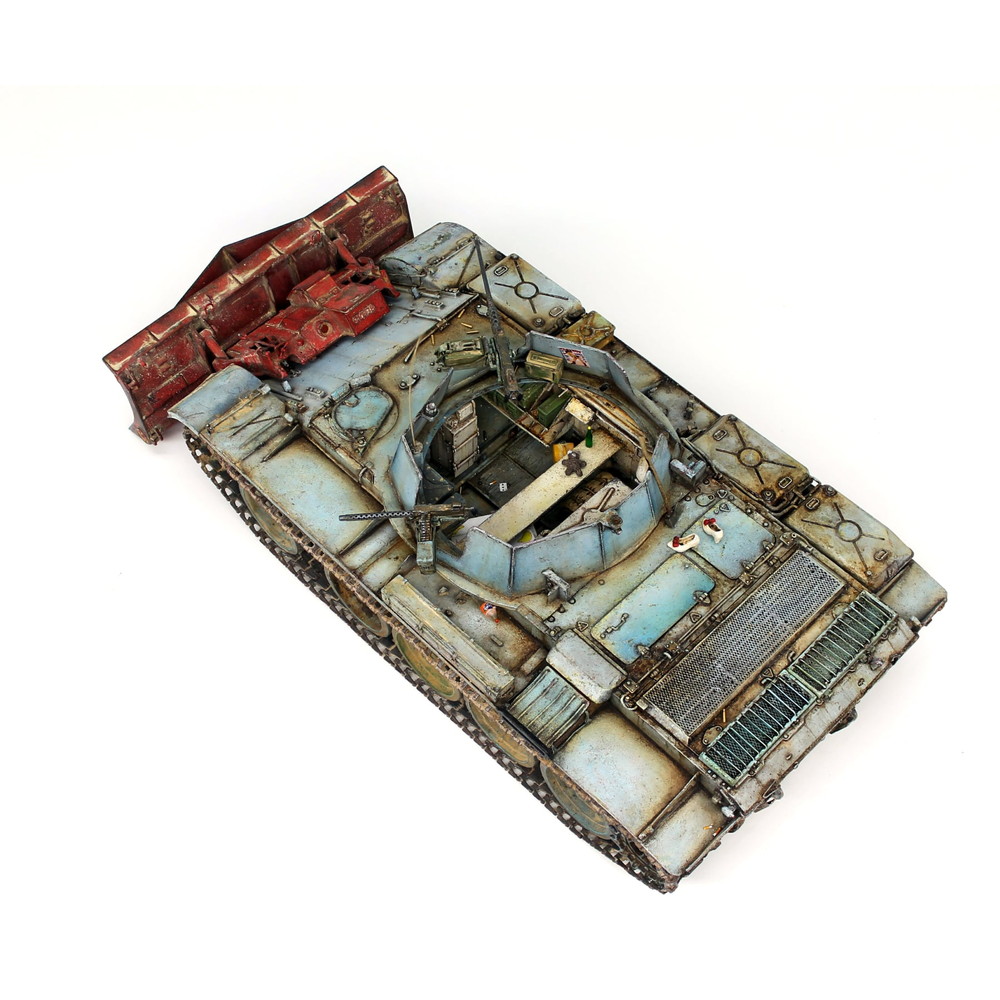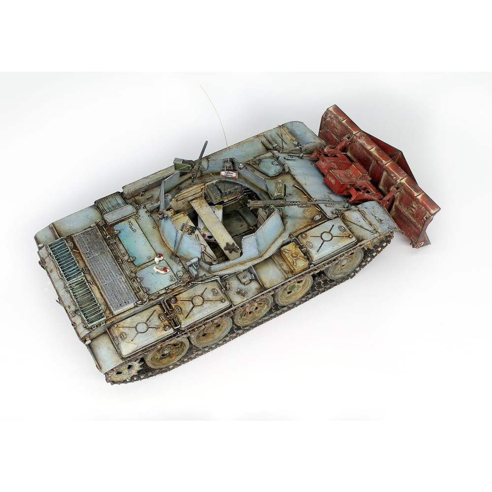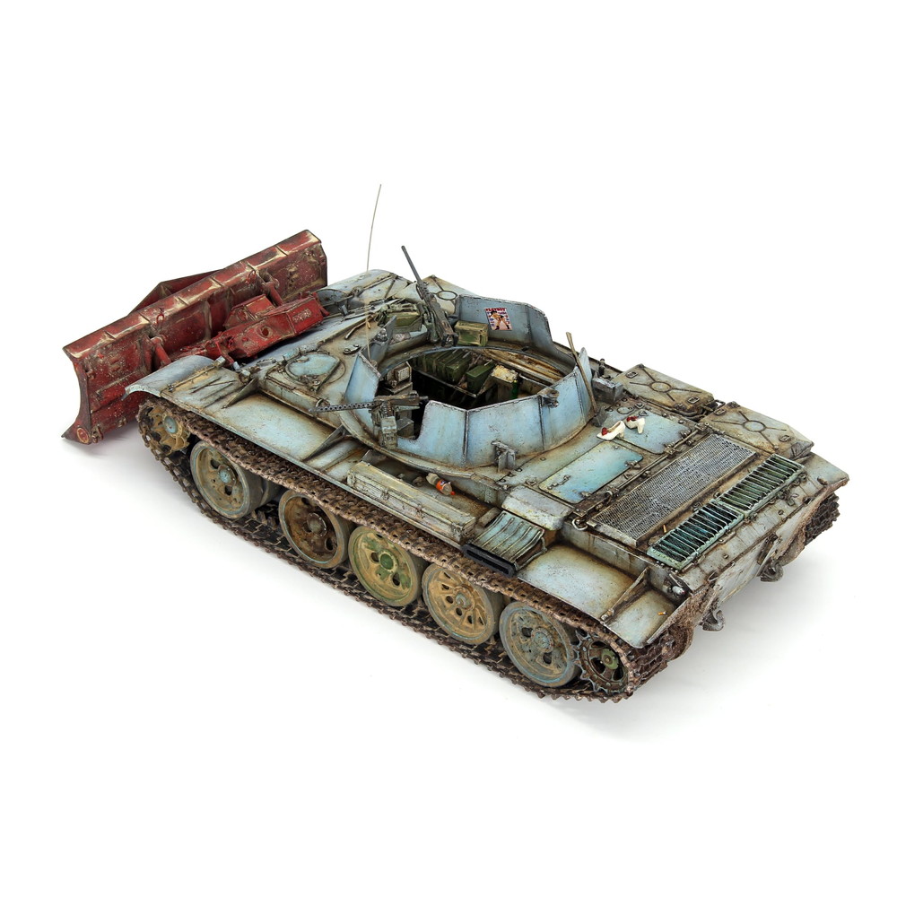 このモデルでは車体前部にドーザブレードを装備したタイプをモデル化しています。T-54戦車を改造して作られた車両はモデルでもT-54戦車の車体に砲塔部分をオープントップにして機関銃などを装備した姿を正確に再現。ベースとなったT-54とは一味違う印象が見逃せません。