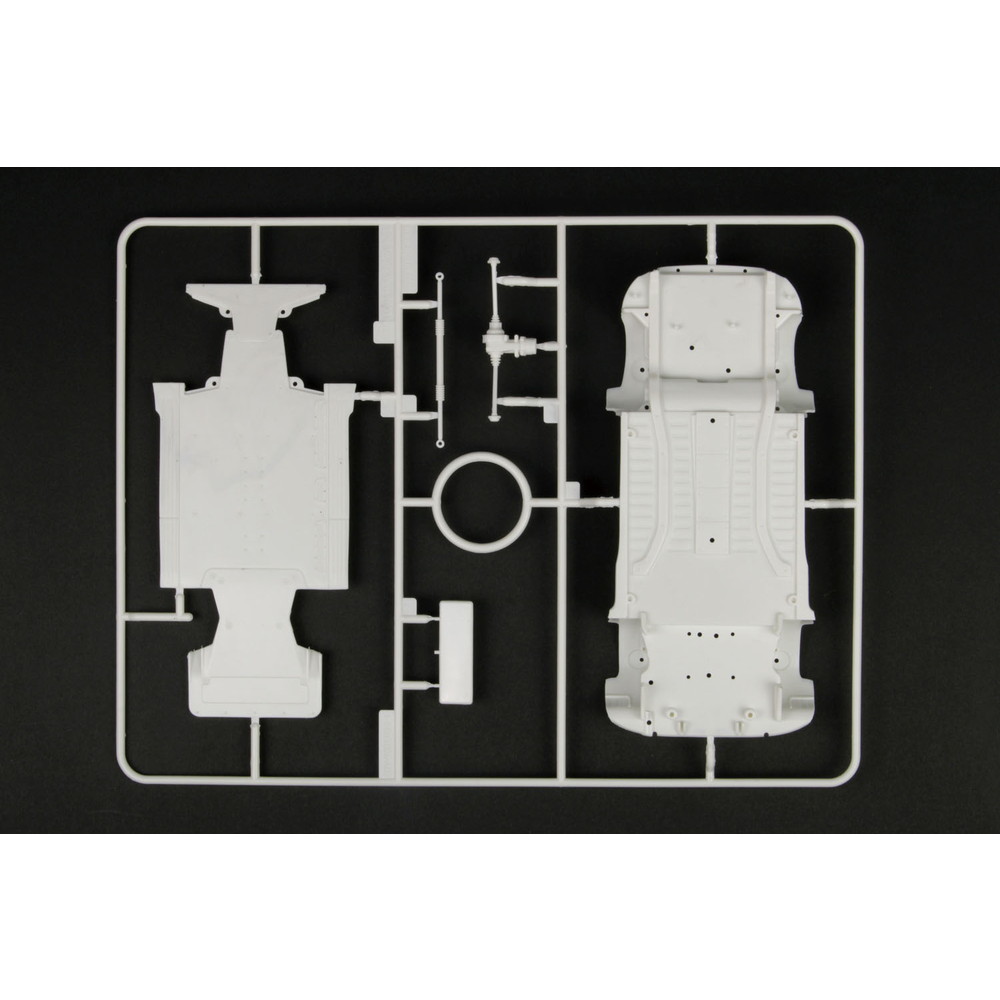 シャーシ下面はそのディテールはもちろんフロントにはエンジン下面のパーツも用意、加えて前後サスペンションもモデル化されメカニカルな仕上がり。