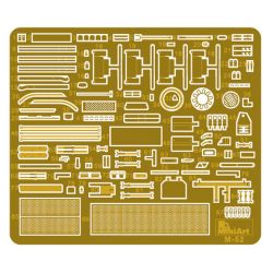 さらに、車体上部や砲塔はその形状を正確に再現するとともに、雑具箱や各種装備品など、細かなディテールもしっかりと表現。細部の繊細な仕上がりを演出するエッチングパーツも付属しています。