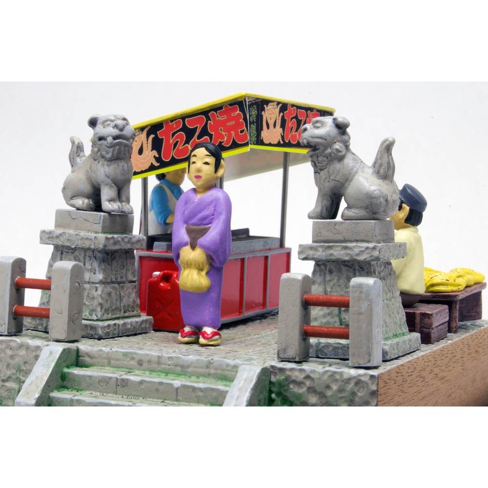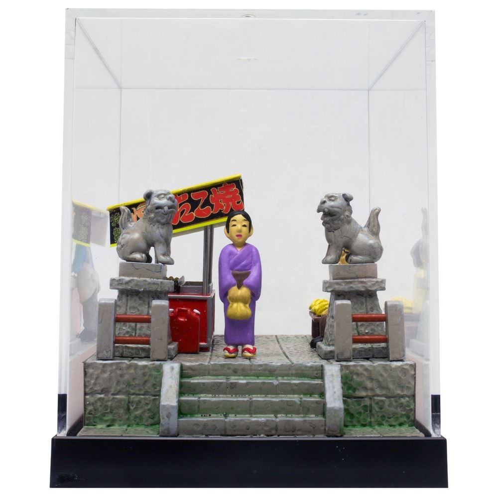 第2弾では、たこ焼きの出店やバナナの叩き売りが並ぶ神社の境内を、和服姿の女性が歩くシーンを再現。あの頃の昭和の風景が机上に広がります。