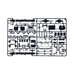モデルは1/24スケールでドイツのメルセデス・ベンツがラインアップするトラック、アクトロスを再現したプラスチックモデル組み立てキットです。2012年に発売されたモデル、MP4のギガスペースキャビン装備タイプを再現しています。仕上がりの全長は約25.5cm、パーツ点数約350点。エンジンからシャシー、キャビン内部に至るまでフルディテールで再現しています。キャビンはハイルーフの外観はもちろんラジエターグリルのデザインなど、しっかりとモデル化。さらに、快適性が高い評価を集めた十分なスペースを持つギガスペースならではのインテリアもリアルに表現しています。キャブオーバータイプのキャビンは完成後も前方に開閉可能。その下には直列レイアウトのエンジンをターボチャージャーなどの補器類まで細かく再現しています。細かな塗装やディテールアップに腕を振るってみるのも楽しみです。加えてシャシーフレームも駆動系やサスペンションまで、実車のメカニズムをそのままモデル化。密度感あふれる仕上がりが見逃せません。マーキングはヨーロッパ各国のライセンスプレートなどもセットされています。
