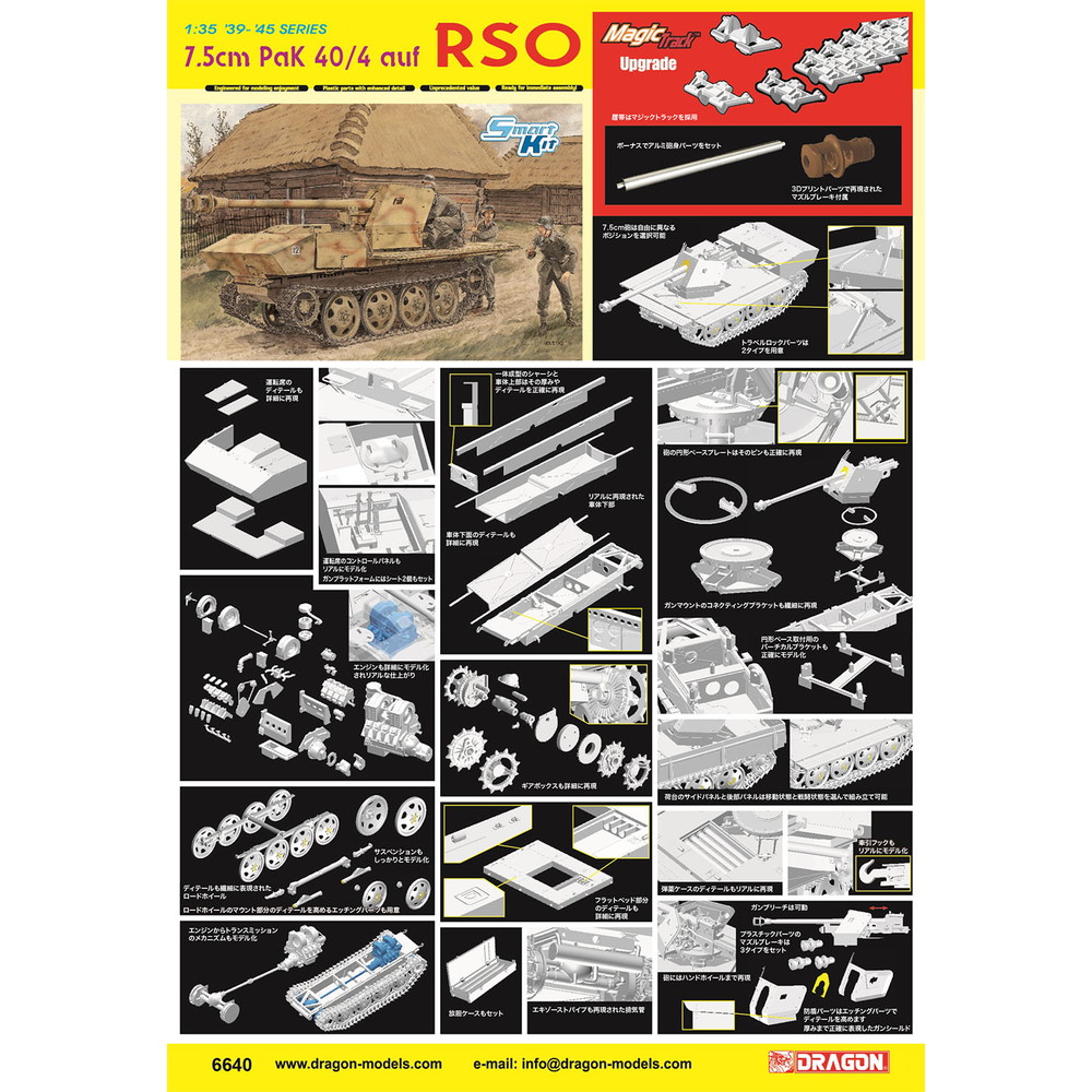 第二次世界大戦中にドイツ軍が開発、運用した7.5cm PaK40搭載型のRSOを1/35スケールで再現したプラスチックモデル組み立てキットです。