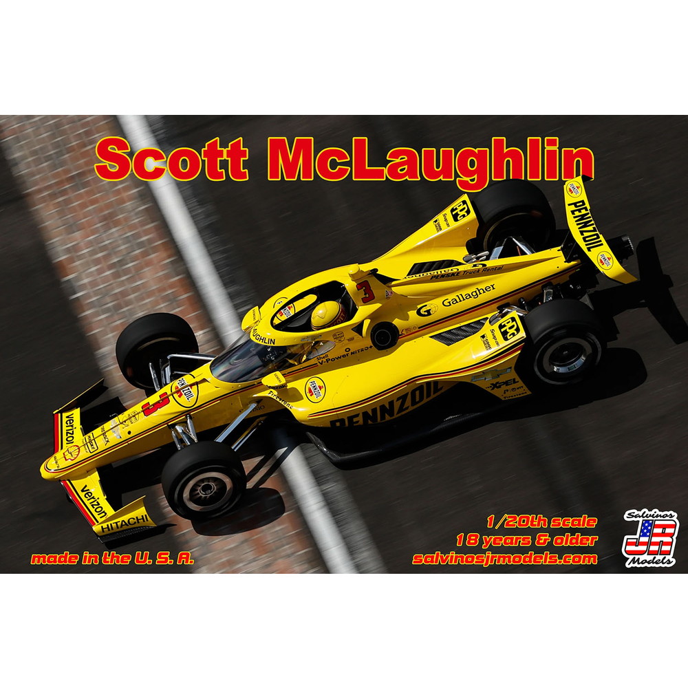 このモデルはインディカーシリーズに参戦するチーム・ペンスキーのスコット・マクラフリンが2023年のインディ500でドライブしたマシンをモデル化。1/20スケール、仕上がり全長約250mmで再現。