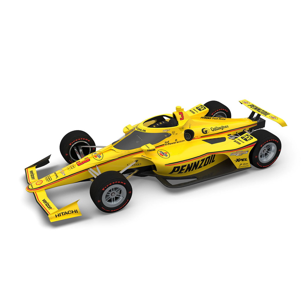 マーキングはおなじみのペンゾイルのロゴなどをデカールで用意。2023年インディ500で14位に入ったマクラフリンのマシンを再現します。