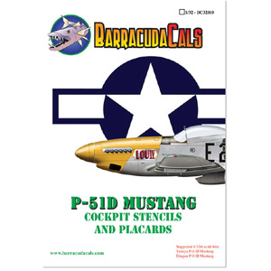 第二次世界大戦中の傑作機、P-51 マスタングのコクピット用ステンシルデカールセット。