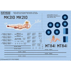 米陸軍航空隊所属のスピットファイア Mk.IX 'Tolly Hello'と英空軍 第2飛行隊所属のスピットファイアMk.VIII 'Pauline' の2機を収録したデカールセット。