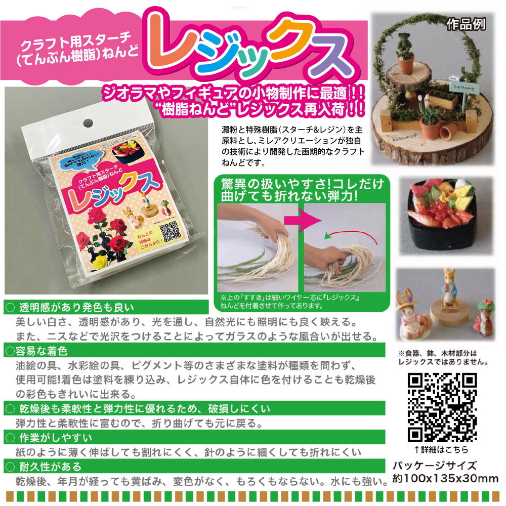 澱粉と特殊樹脂(スターチ&レジン)を主原料とし、ミレアクリエーションが独自の技術により開発した画期的なクラフトねんどです。