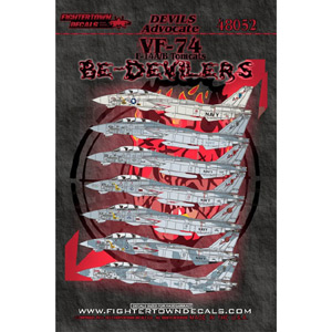 米海軍 VF-74"ビ・デビラーズ"所属のF-14A/Bトムキャットのデカールセット。CAG機含む全9機分を収録。