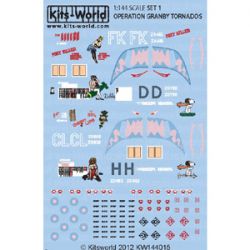 湾岸戦争で最も危険な任務に従事し、驚異的な戦果を挙げているパナヴィア•トーネードGR.1のデカールセット。