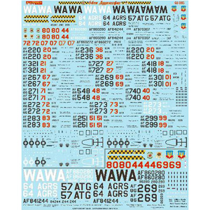 戦闘技術向上のため、仮想敵飛行隊として活躍する米空軍第64アグレッサー飛行隊所属のF-16のマーキングを網羅したデカールセットです。