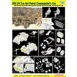 モデルは1/35スケールでSAS部隊が使用した1/4トン小型軍用車を北アフリカ戦線での仕様で再現したプラスチックモデル組み立てキットです。加えて、SAS部隊兵士2体もセットされています。
