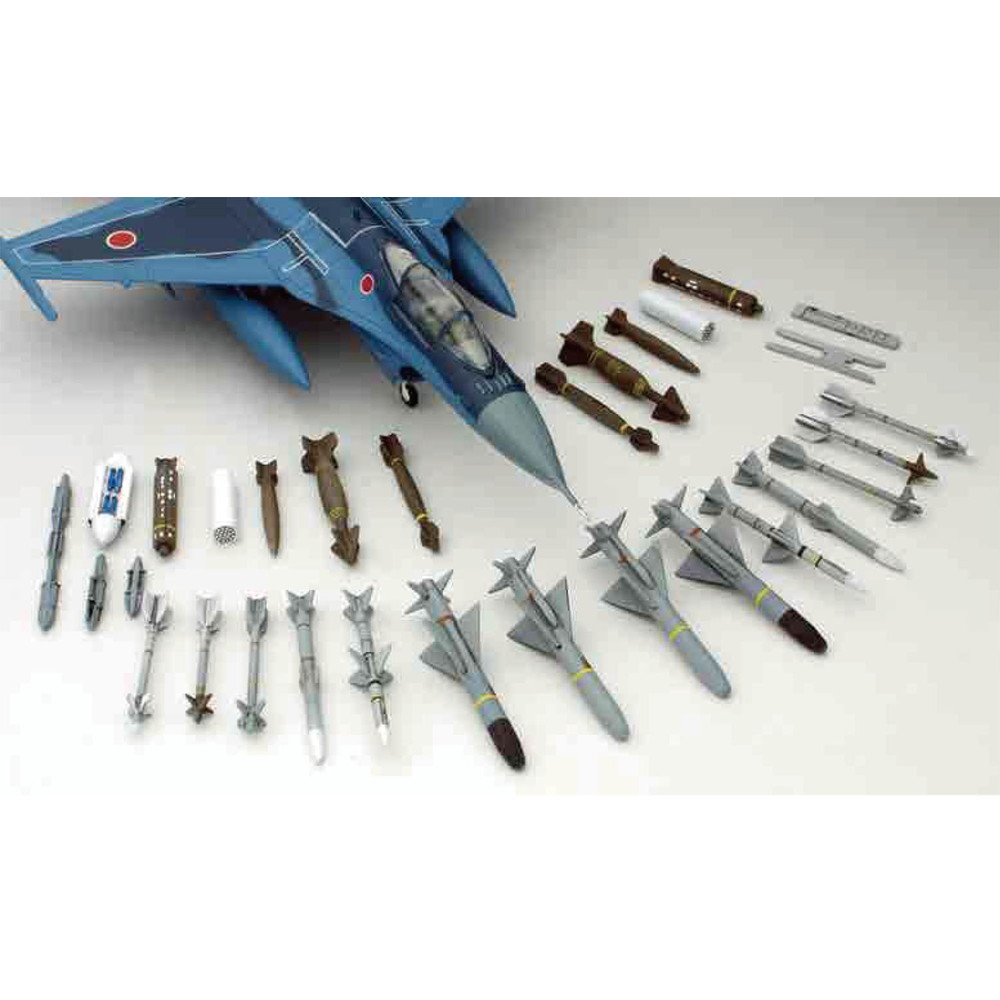 空対空ミサイルや対艦ミサイル、爆弾等の武装の他、これらを航空機に搭載するためのパイロンやエジェクターラックなども精密にパーツ化。