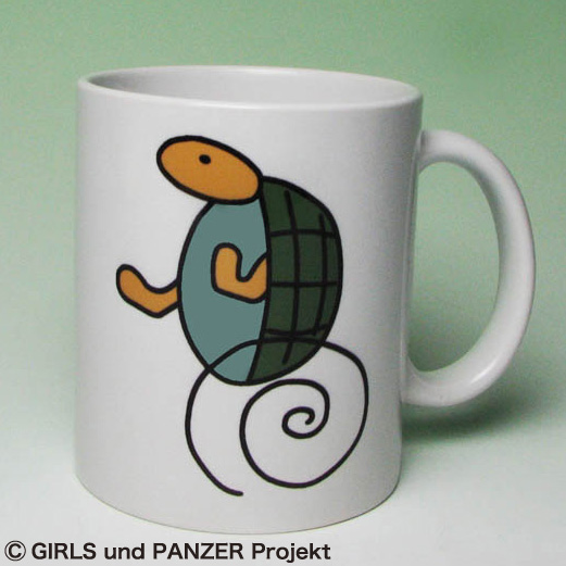 ガールズ&パンツァーのロゴとカメさんマークをプリントしたマグカップです。落ち着いたデザインのため普段使いにも最適です。