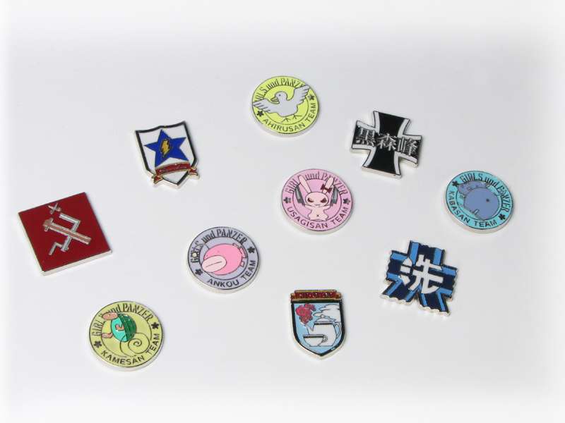 大洗女子学園の各チームマークをはじめ、ライバル校の校章を金属製のマグネットにしました。