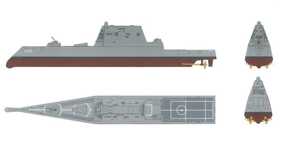 2011年11月17日起工、2013年10月28日に進水、現在も2015年の就役を目指して建造が進められているのがアメリカ海軍の ズムウォルトミサイル駆逐艦DDG?1000です。