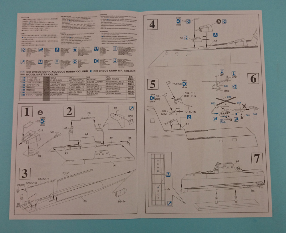 また、乾舷から上部構造物も左右分割を基本に巧みな部品分割でその未来的なこれまでの艦船とは一線を画した独特なデザインを立体化して見せてくれます。