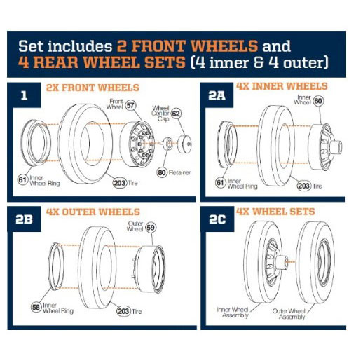 1/25 scale wheel and tire set for replacement use on most modern semi kits.
