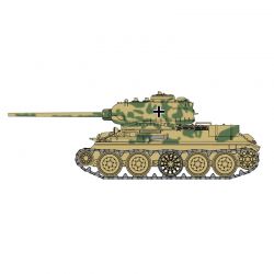 第二次世界大戦でドイツ軍がソビエト軍から鹵獲し、自軍の戦車として運用したT-34/85を1/35スケールで再現したプラスチックモデル組み立てキットです。
