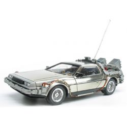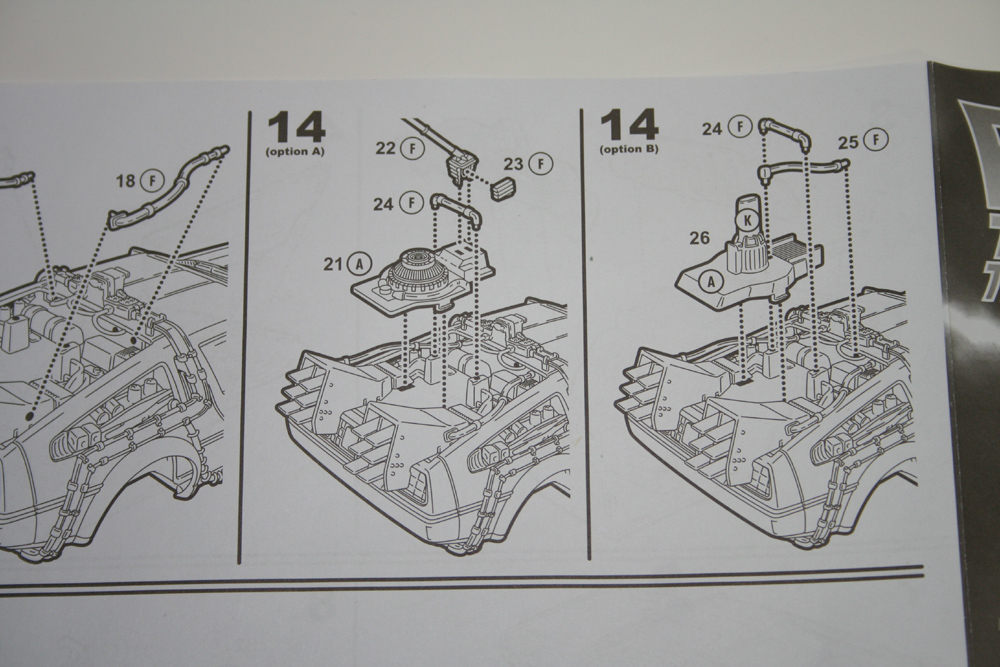 映画「バック・トゥ・ザ・フューチャー」の第1作でのマシンを再現したモデルはオプションでリヤに搭載されるメカニズムにヒルバレーの時計台での落雷シーンに登場したフックつきのポールを取り付けたタイプか最後のシーンで未来から帰ってきた「ドク」が乗ってきたタイプでリヤにミスター・フュージョンを取り付けたタイプのどちらかを選んで組み立て可能です。