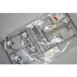 トレッドパターンもリアルなゴムタイヤを装着したメッキホイールパーツを金属シャフトに差し込んで仕上げます。