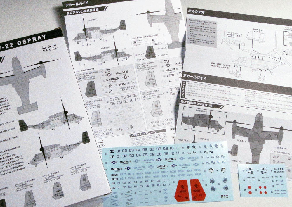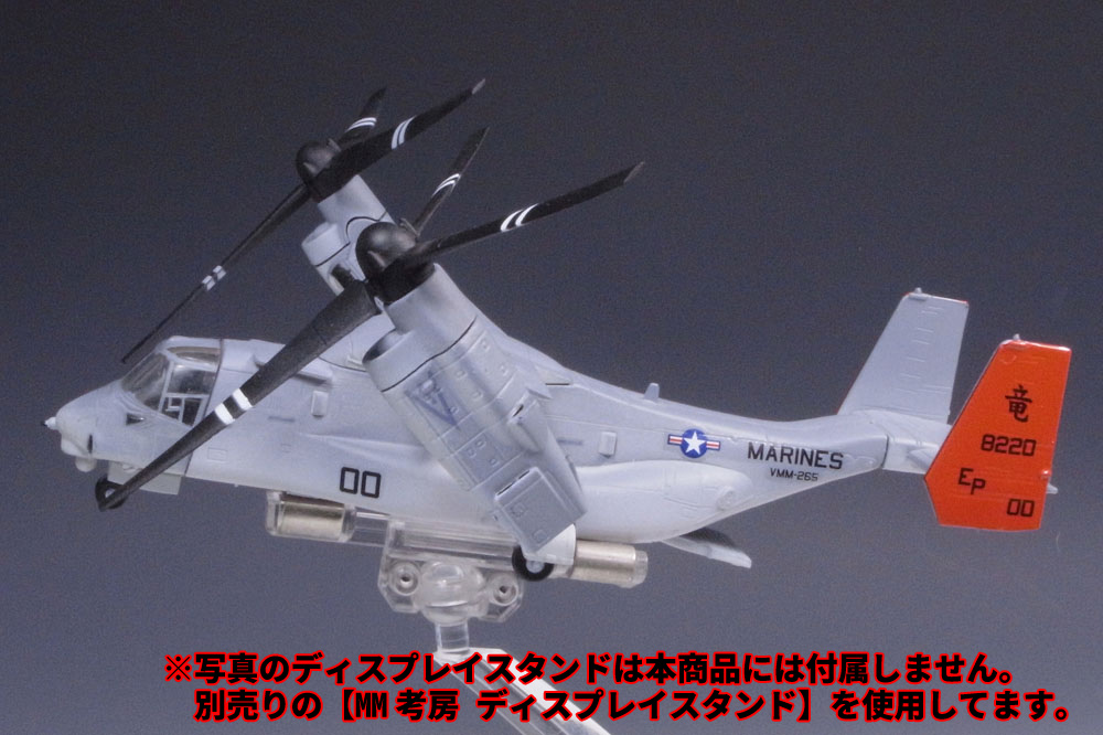 ■米海兵隊機は2012年夏に岩国基地へ到着した際の VMM?561"Pale Horses" 所属機2機(ハイビジマーキング機・ロービジマーキング機)及び普天間基地に配備された際の VMM?265"Dragons" 所属機2機(ハイビジマーキング機・ロービジマーキング機)の中から1機を選択して製作可能