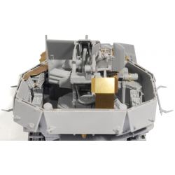 ■オープントップの戦闘室は対空機関砲用マウントをはじめ、通信機や兵士用装備品の数々なども再現。