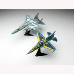 機体上面に大胆な白龍を描いた第303飛行隊のF-15Jと、自衛隊特別塗装機のイメージを塗り替えた3空団のF-2Aをリアルに再現した塗装済完成品です。