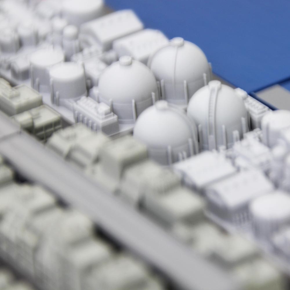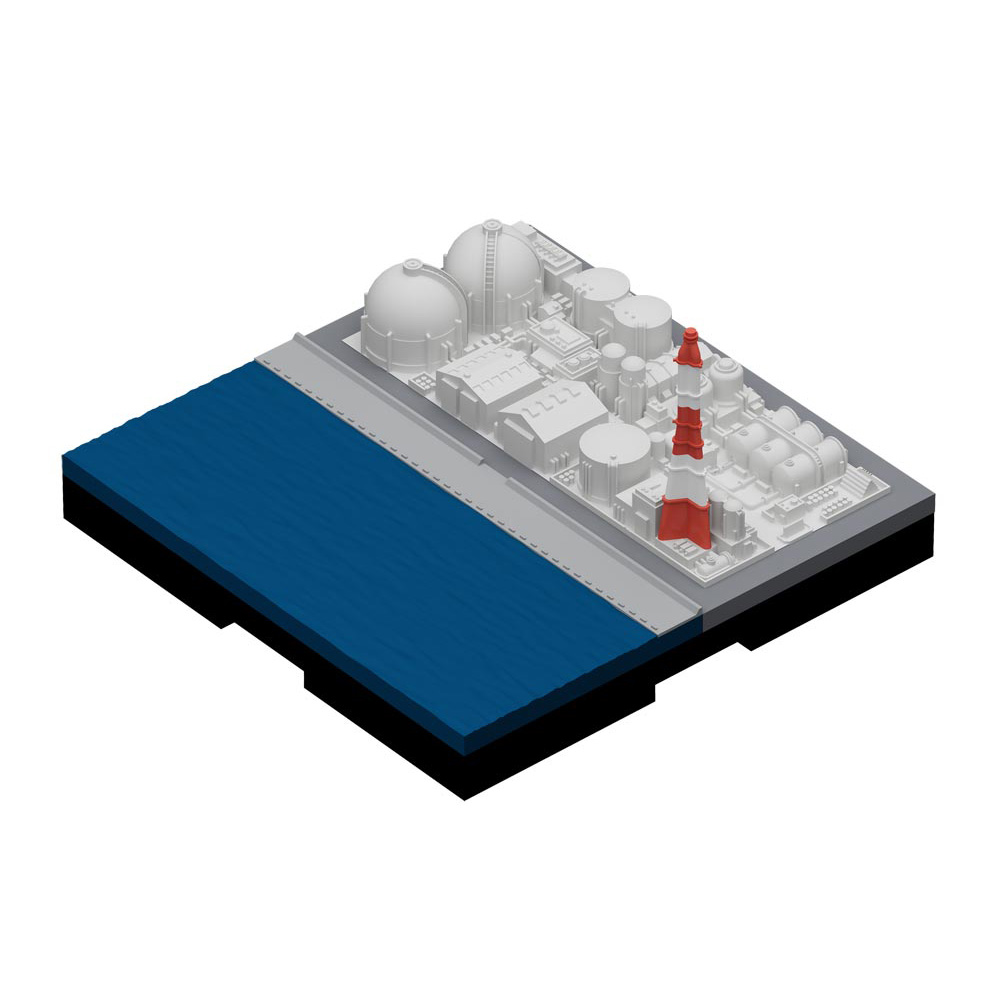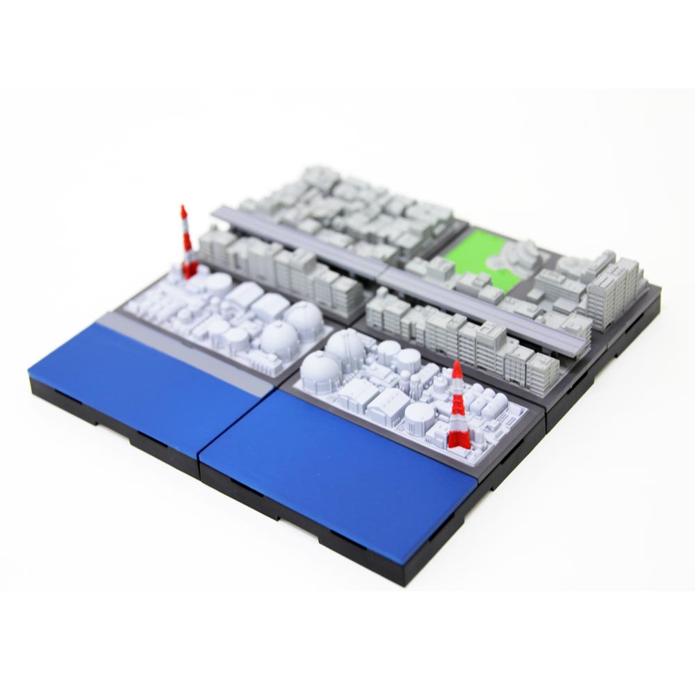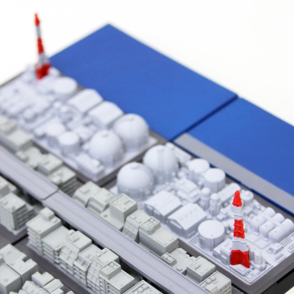 リアルな造形と彩色で仕上げたタンクや倉庫は集める程壮大なベイエリアが完成します。