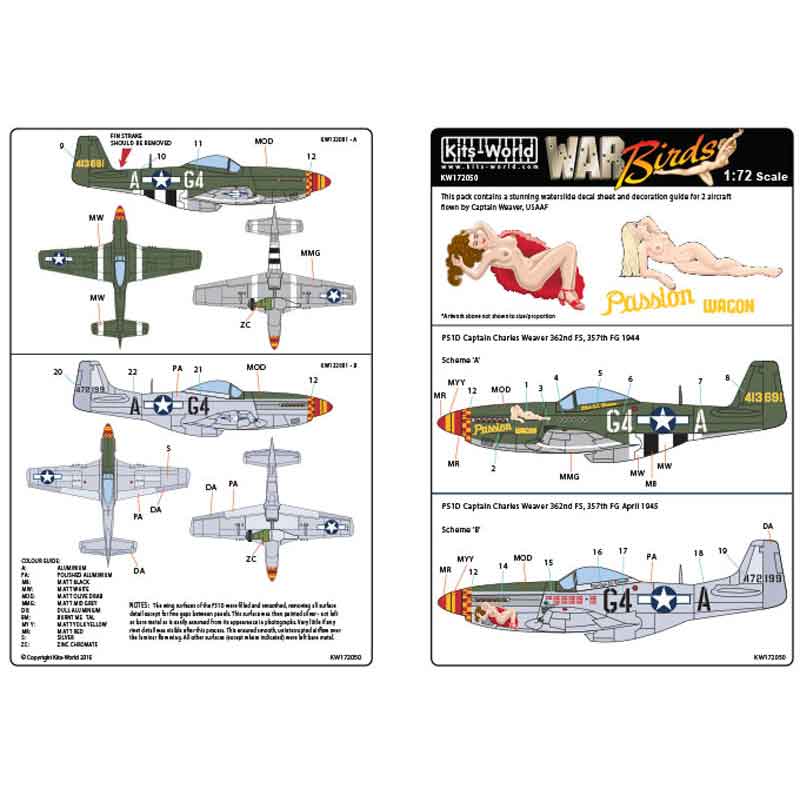 KITSWORLD 1/72 Charles Weaver P-51D DECAL SET