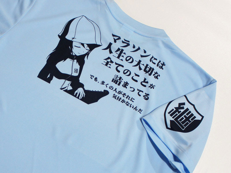 劇場版で登場し、強烈な印象を残した、ミカ、アキ、ミッコ達『継続高校』をイメージしたライトブルーが爽やかなランナーシャツです。スポーツなどのアクティブシーンに最適なドライ&UVカット機能付きなので、マラソンにはうってつけです。