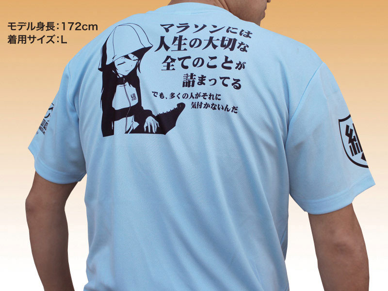 劇場版で登場し、強烈な印象を残した、ミカ、アキ、ミッコ達『継続高校』をイメージしたライトブルーが爽やかなランナーシャツです。スポーツなどのアクティブシーンに最適なドライ&UVカット機能付きなので、マラソンにはうってつけです。