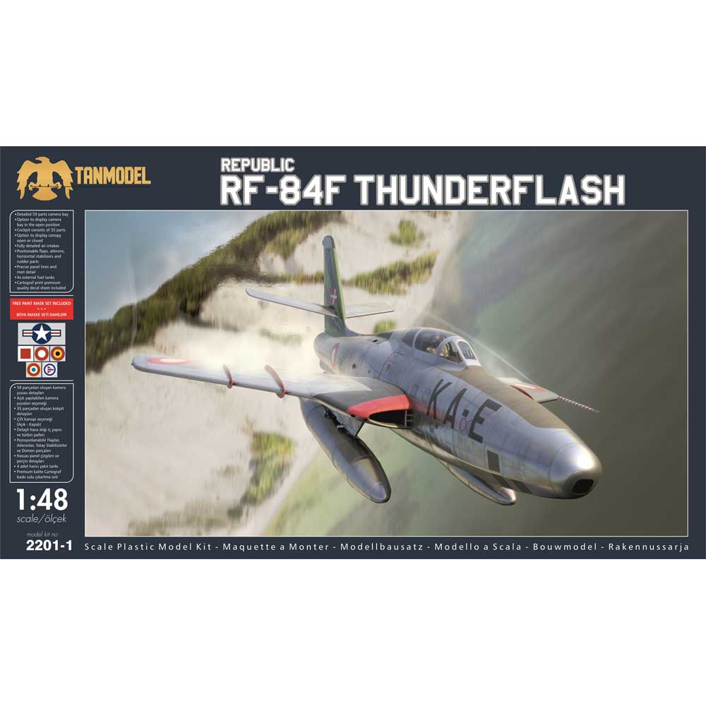 トルコの模型メーカー、タンモデルによって1/48スケールで再現されたRF-84Fサンダーフラッシュのプラスチックモデル組み立てキットです。モデルはトルコ空軍の協力の下、実機を3Dスキャナーを使ってスキャン。そのデータと実機取材に基づく資料をベースに設計されています。